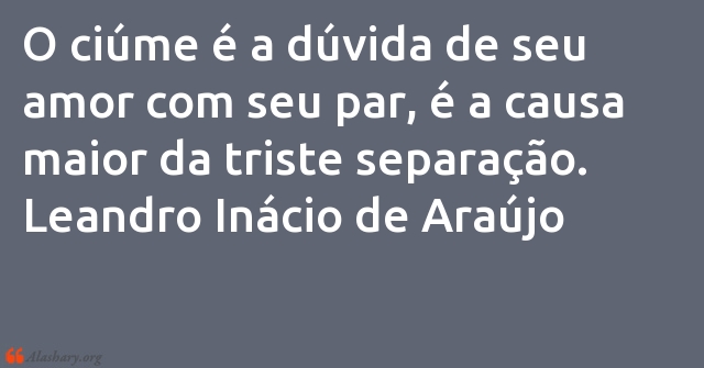 O ciúme é a dúvida de seu amor com seu par, é a causa maior da triste separação. Leandro Inácio de Araújo