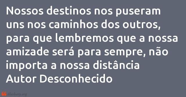 Nossos destinos nos puseram uns nos caminhos dos outros, para que lembremos que a nossa amizade será para sempre, não importa a nossa distância