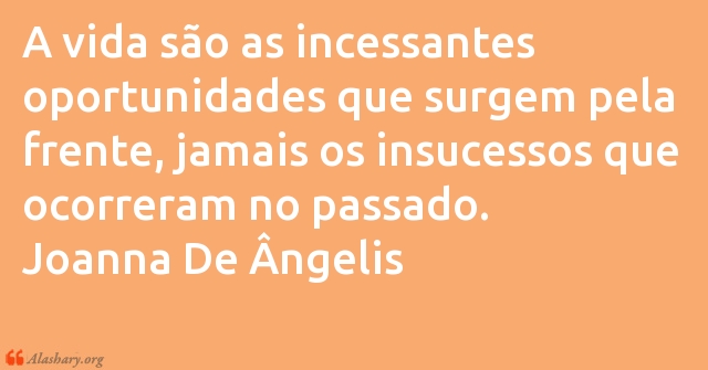 A vida são as incessantes oportunidades que surgem pela frente, jamais os insucessos que ocorreram no passado.