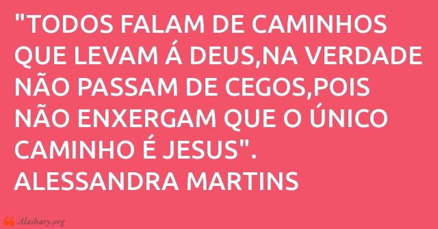 "TODOS FALAM DE CAMINHOS QUE LEVAM Á DEUS,NA VERDADE NÃO PASSAM DE CEGOS,POIS NÃO ENXERGAM QUE O ÚNICO CAMINHO É JESUS".