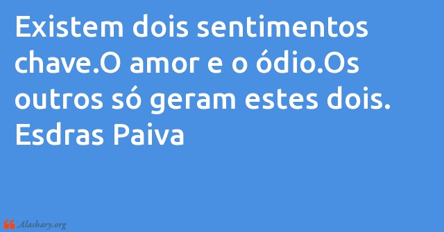 Existem dois sentimentos chave.O amor e o ódio.Os outros só geram estes dois. Esdras Paiva