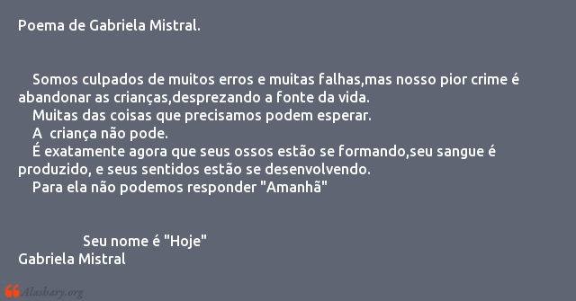 Somos culpados de muitos erros e muitas falhas,mas nosso pior crime é abandonar as crianças,desprezando a fonte da vida.