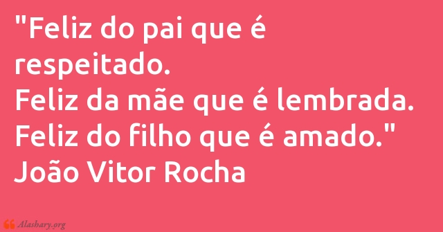"Feliz do pai que é respeitado. Feliz da mãe que é lembrada. Feliz do filho que é amado." João Vitor Rocha