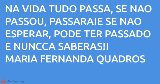 NA VIDA TUDO PASSA, SE NAO PASSOU, PASSARA!E SE NAO ESPERAR, PODE TER PASSADO E NUNCCA SABERAS!!