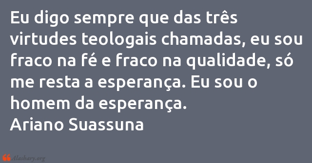 Eu digo sempre que das três virtudes teologais chamadas, eu sou fraco na fé e fraco na qualidade, só me resta a esperança. Eu sou o homem da esperança.