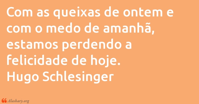 Com as queixas de ontem e com o medo de amanhã, estamos perdendo a felicidade de hoje. Hugo Schlesinger