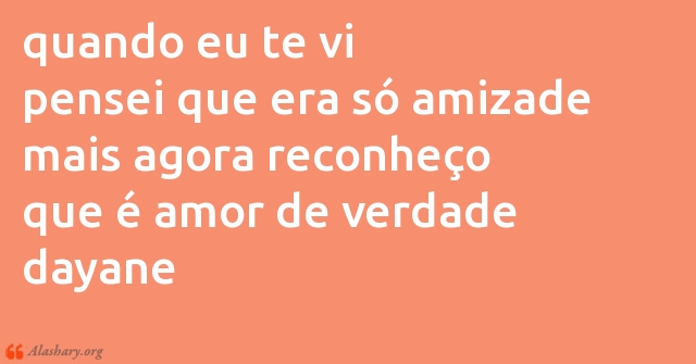 quando eu te vi pensei que era só amizade mais agora reconheço que é amor de verdade dayane