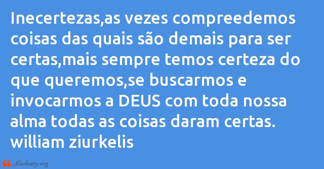Inecertezas,as vezes compreedemos coisas das quais são demais para ser certas,mais sempre temos certeza do que queremos,se buscarmos e invocarmos a DEUS com toda nossa alma todas as coisas daram certas.