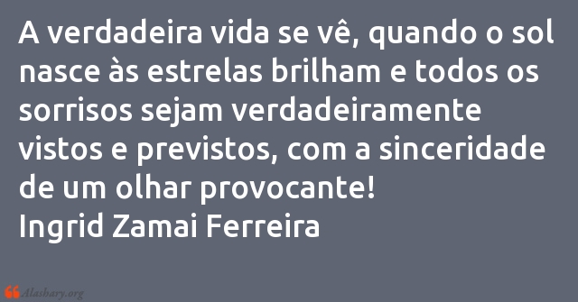 A verdadeira vida se vê, quando o sol nasce às estrelas brilham e todos os sorrisos sejam verdadeiramente vistos e previstos, com a sinceridade de um olhar provocante!