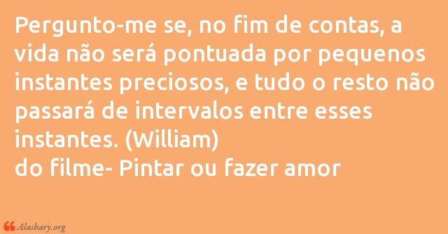 Pergunto-me se, no fim de contas, a vida não será pontuada por pequenos instantes preciosos, e tudo o resto não passará de intervalos entre esses instantes. (William)