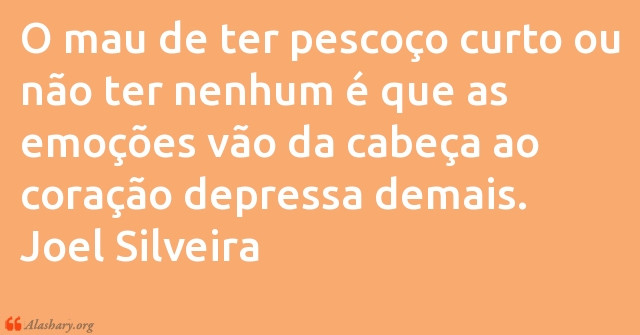 O mau de ter pescoço curto ou não ter nenhum é que as emoções vão da cabeça ao coração depressa demais. Joel Silveira