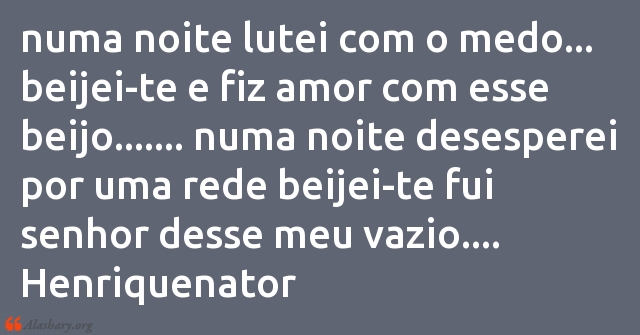 numa noite lutei com o medo... beijei-te e fiz amor com esse beijo....... numa noite desesperei por uma rede beijei-te fui senhor desse meu vazio....