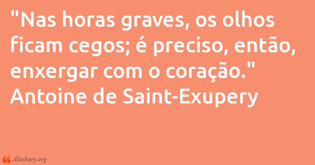 "Nas horas graves, os olhos ficam cegos; é preciso, então, enxergar com o coração."