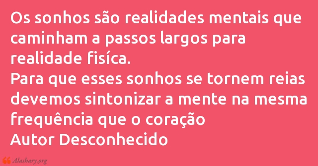 Para que esses sonhos se tornem reias devemos sintonizar a mente na mesma frequência que o coração