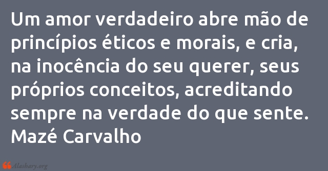 Um amor verdadeiro abre mão de princípios éticos e morais, e cria, na inocência do seu querer, seus próprios conceitos, acreditando sempre na verdade do que sente. Mazé Carvalho