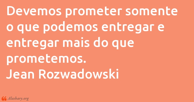 Devemos prometer somente o que podemos entregar e entregar mais do que prometemos. Jean Rozwadowski