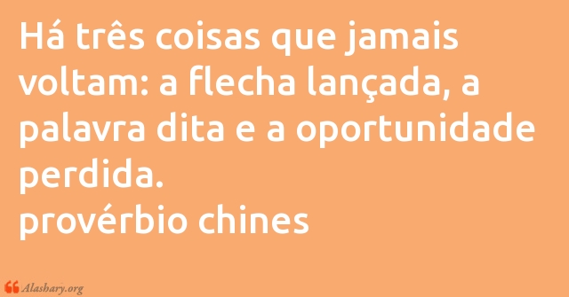 Há três coisas que jamais voltam: a flecha lançada, a palavra dita e a oportunidade perdida. provérbio chines