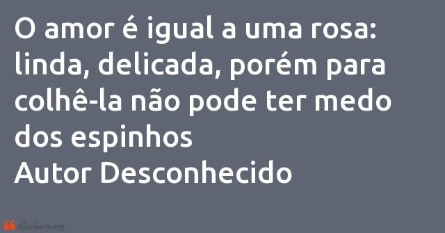 O amor é igual a uma rosa: linda, delicada, porém para colhê-la não pode ter medo dos espinhos Autor Desconhecido