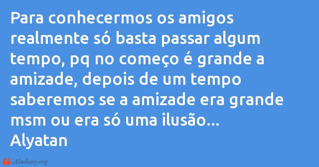 Para conhecermos os amigos realmente só basta passar algum tempo, pq no começo é grande a amizade, depois de um tempo saberemos se a amizade era grande msm ou era só uma ilusão... Alyatan