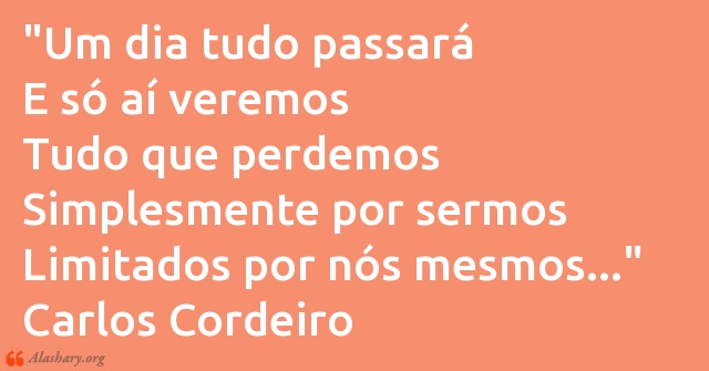 "Um dia tudo passará E só aí veremos Tudo que perdemos Simplesmente por sermos Limitados por nós mesmos..." Carlos Cordeiro