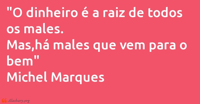 "O dinheiro é a raiz de todos os males. Mas,há males que vem para o bem" Michel Marques