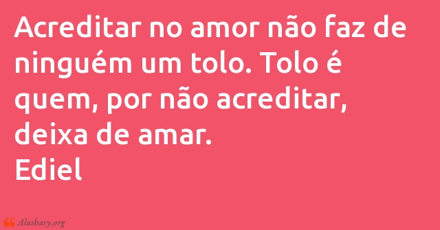 Acreditar no amor não faz de ninguém um tolo. Tolo é quem, por não acreditar, deixa de amar. Ediel