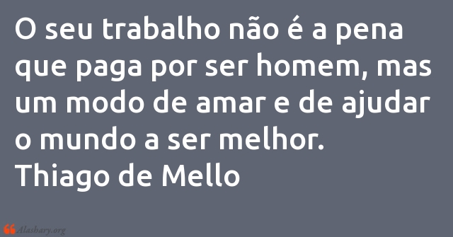 O seu trabalho não é a pena que paga por ser homem, mas um modo de amar e de ajudar o mundo a ser melhor. Thiago de Mello