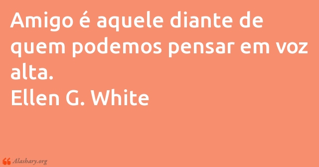 Amigo é aquele diante de quem podemos pensar em voz alta. Ellen G. White