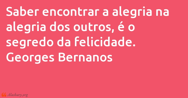 Saber encontrar a alegria na alegria dos outros, é o segredo da felicidade. Georges Bernanos