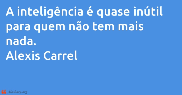 A inteligência é quase inútil para quem não tem mais nada. Alexis Carrel