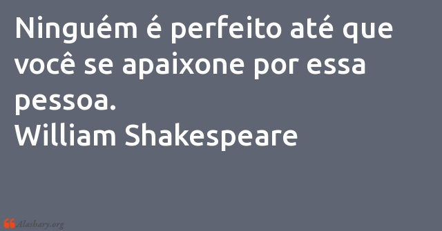 Ninguém é perfeito até que você se apaixone por essa pessoa. William Shakespeare