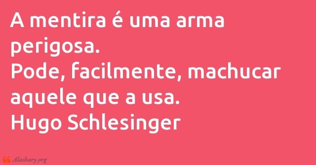 A mentira é uma arma perigosa. Pode, facilmente, machucar aquele que a usa. Hugo Schlesinger