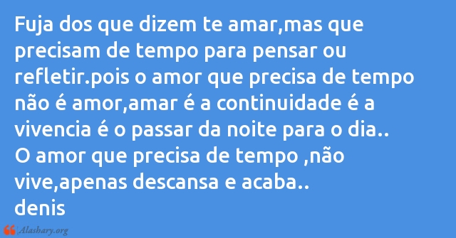 Fuja dos que dizem te amar,mas que precisam de tempo para pensar ou refletir.pois o amor que precisa de tempo não é amor,amar é a continuidade é a vivencia é o passar da noite para o dia..