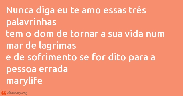 Nunca diga eu te amo essas três palavrinhas tem o dom de tornar a sua vida num mar de lagrimas e de sofrimento se for dito para a pessoa errada