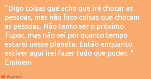 "Digo coisas que acho que irá chocar as pessoas, mas não faço coisas que chocam as pessoas. Não tento ser o próximo Tupac, mas não sei por quanto tempo estarei nesse planeta. Então enquanto estiver aqui irei fazer tudo que puder. "