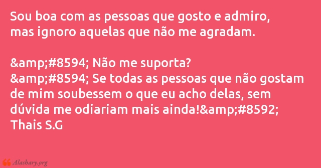 → Se todas as pessoas que não gostam de mim soubessem o que eu acho delas, sem dúvida me odiariam mais ainda!←