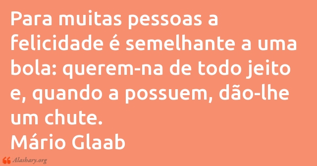 Para muitas pessoas a felicidade é semelhante a uma bola: querem-na de todo jeito e, quando a possuem, dão-lhe um chute.