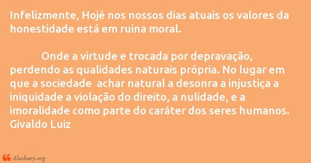 Infelizmente, Hojé nos nossos dias atuais os valores da honestidade está em ruina moral.