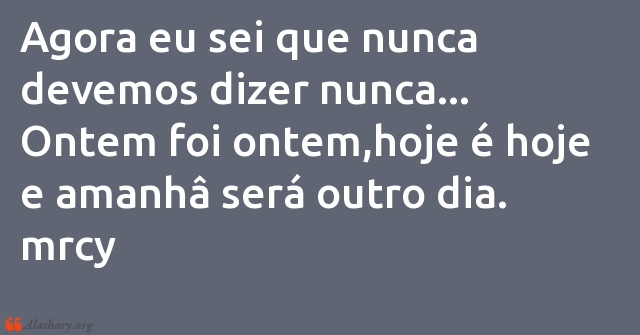 Agora eu sei que nunca devemos dizer nunca... Ontem foi ontem,hoje é hoje e amanhâ será outro dia. mrcy