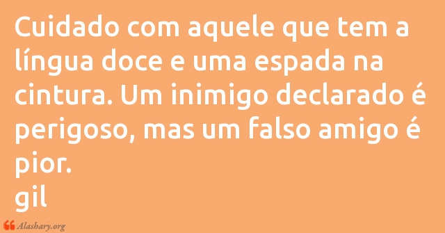 Cuidado com aquele que tem a língua doce e uma espada na cintura. Um inimigo declarado é perigoso, mas um falso amigo é pior.
