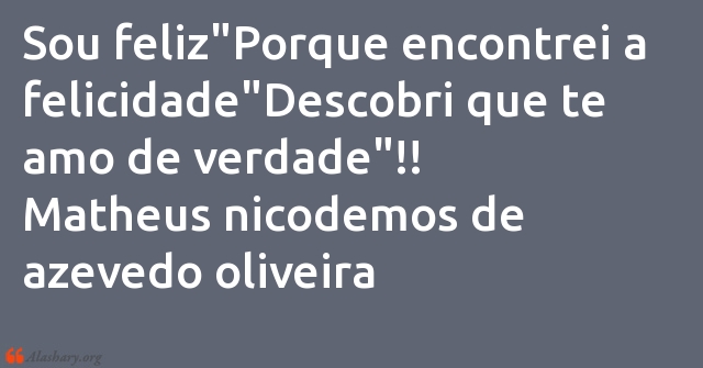 Sou feliz"Porque encontrei a felicidade"Descobri que te amo de verdade"!! Matheus nicodemos de azevedo oliveira