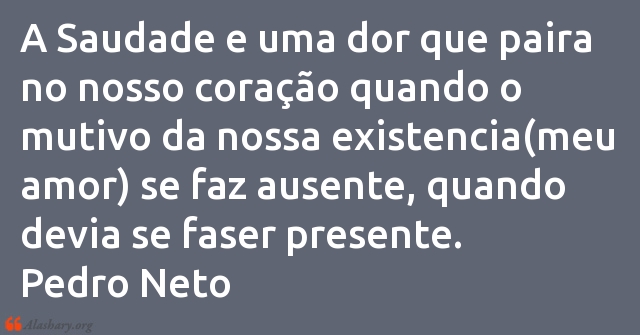 A Saudade e uma dor que paira no nosso coração quando o mutivo da nossa existencia(meu amor) se faz ausente, quando devia se faser presente.