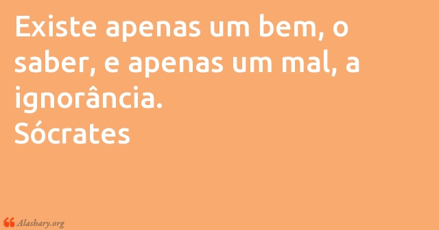 Existe apenas um bem, o saber, e apenas um mal, a ignorância. Sócrates