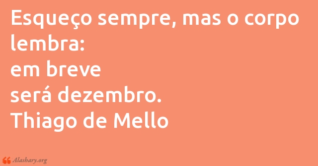 Esqueço sempre, mas o corpo lembra: em breve será dezembro. Thiago de Mello