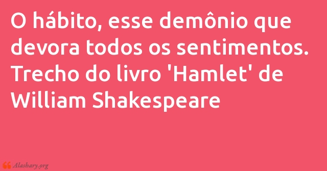O hábito, esse demônio que devora todos os sentimentos. William Shakespeare