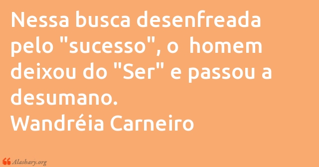 Nessa busca desenfreada pelo "sucesso", o homem deixou do "Ser" e passou a desumano. Wandréia Carneiro