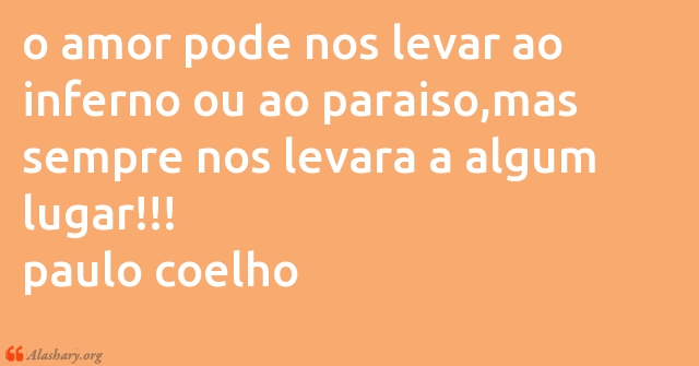 o amor pode nos levar ao inferno ou ao paraiso,mas sempre nos levara a algum lugar!!! paulo coelho