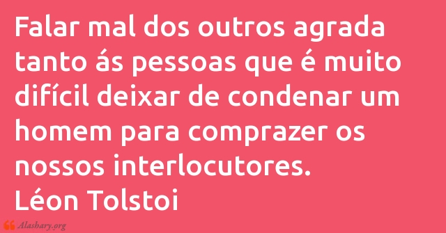 Falar mal dos outros agrada tanto ás pessoas que é muito difícil deixar de condenar um homem para comprazer os nossos interlocutores. Léon Tolstoi