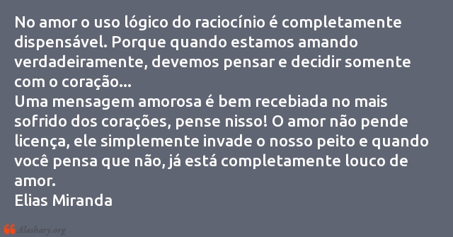 No amor o uso lógico do raciocínio é completamente dispensável. Porque quando estamos amando verdadeiramente, devemos pensar e decidir somente com o coração...