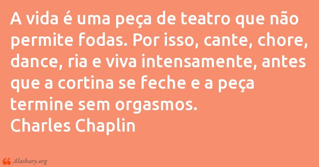 A vida é uma peça de teatro que não permite fodas. Por isso, cante, chore, dance, ria e viva intensamente, antes que a cortina se feche e a peça termine sem orgasmos.